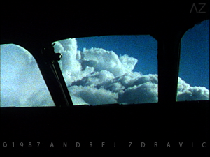 In Airborne we leap high into the atmosphere in the cockpit of a jet airliner. The film is a distillate of some seventy flights over Europe (130 hours of flying), through swiftly changing light and weather conditions. I was particularly fascinated by the relationships of the natural world framed by the cockpit windows and the complex computerized navigation.