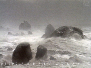 “… In his film about the ocean and its waters, its waves and foam, Zdravič is again the water, the wave and the foam, maybe even the gentle light-footed sandpiper running on the sandy coast in front of a wave that is chasing it but will never catch it, just as Achilles will never catch his turtle. The white water and foam, the bubbles and the mist, the roaring gray waves, the long, endless rollers, and then the almost microscopic ripples in which the mightiness of the ocean dies away on dry land. All this water carries within music that even composers like Händel and Smetana were unable to turn into notes, rhythm and counterpoint. Or Claude Debussy, who paved the way to musical impressionism.”